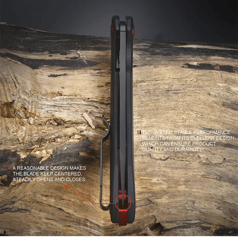 【STYLISH AND COMFORTABLE G10 HANDLE】 We designed the handle of the Gobi to mirror the sleek styling of the blade. The G10 scales are contoured and 3D machined to make the knife look and feel smooth in the hand. A bright red textured backspacer and pivot collar add a pop of color and additional stability to this dynamic looking knife